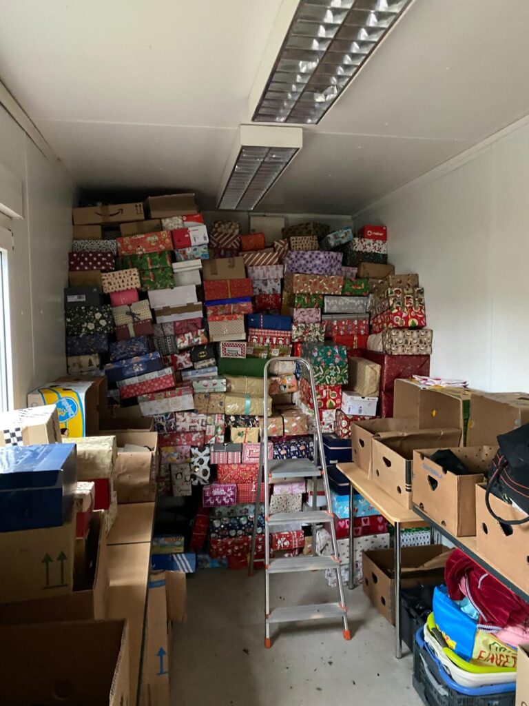 Was wäre Weihnachten ohne Geschenke? Deshalb wollten wir euch die Möglichkeit geben, Geschenke an rumänische Familien zu schicken. Im Oktober und November wurden viele Pakete gepackt und an der Sozialstation abgegeben. Sie enthalten Spielzeug, Süßigkeiten, Hygieneartikel und Lebensmittel. Dieses Wochenende wurden alle Pakete nach Rumänien geschickt. Insgesamt sind 581 Pakete zusammengekommen und werden in der Weihnachtszeit an Familien verteilt, die es am nötigsten haben, um dort in schwierigen Zeiten Hoffnung zu bringen.