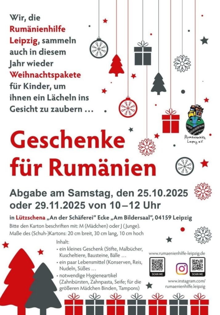Die Rumänienhilfe Leipzig e.V. ist ein gemeinnütziger Verein mit dem Ziel, bedürftige Menschen in Rumänien zu unterstützen. In Leipzig sammeln wir Spenden, die über eine Sozialstation nahe Suceava an die Bevölkerung verteilt werden.